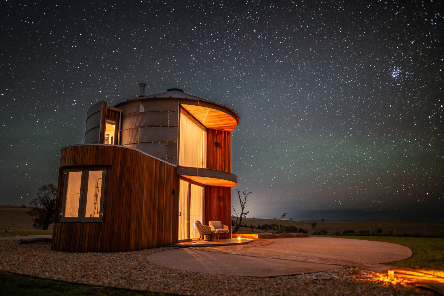 The Silos is off-grid perfection (EV charger and all). This 1960’s Lysaght grain silo - lovingly transformed into a secluded couples’ retreat - is set on a 6th generation working farm. Enjoy views of the Eurongilly Valley from the hot tub or fire up the outdoor fire pit and take in the stars. During the day, meander along a farm trail or book a 'meet the farmer' tour. This stay is all-inclusive with guests being treated to the very best Riverina produce.